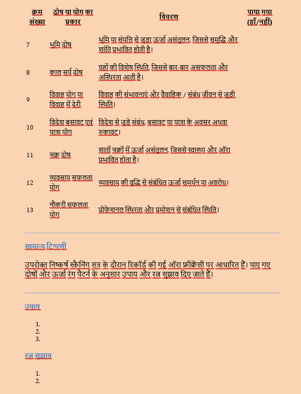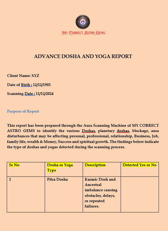 दोष और योग की जाँच कराएं और रिपोर्ट प्राप्त करें ! Get Dosha and Yoga checked and receive your report