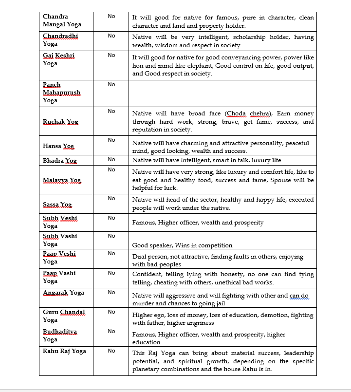5. Dosha and Yoga Report – दोष एवं योग रिपोर्ट