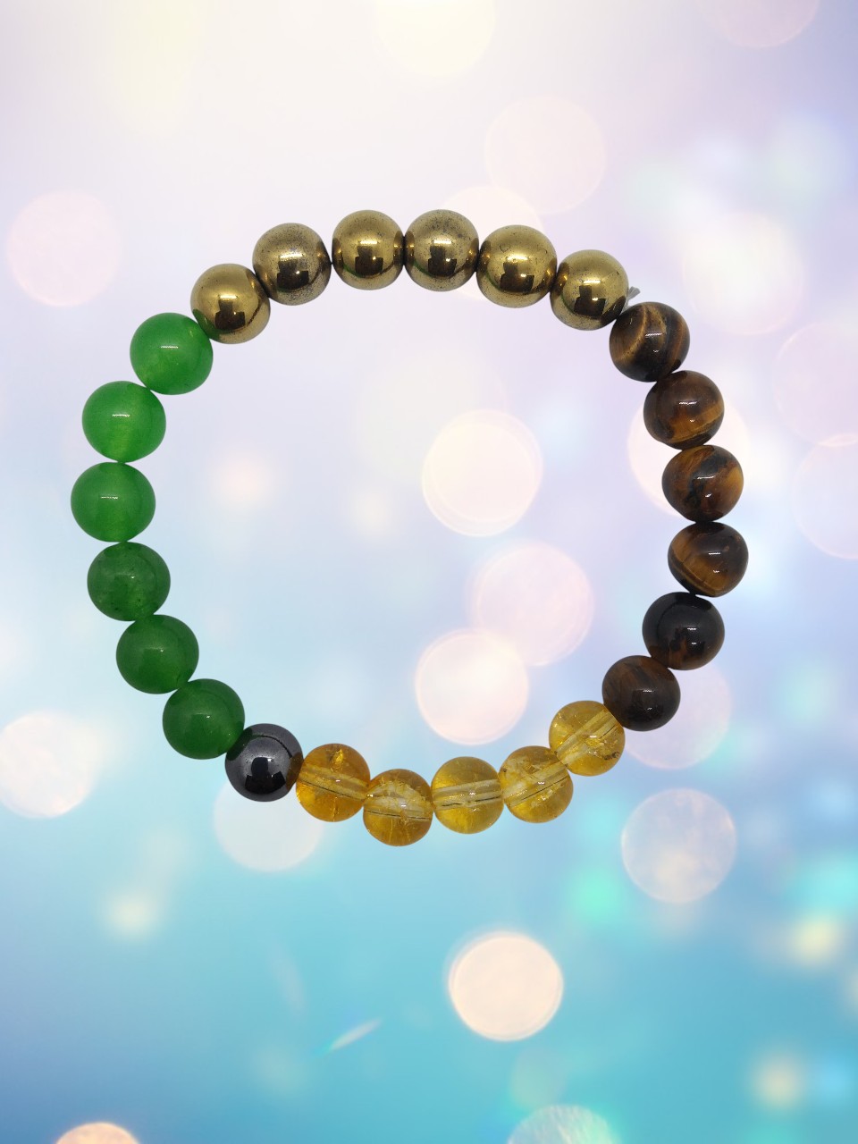 This Natural Money Magnet Bracelet is crafted from a powerful combination of prosperity-attracting crystals (such as Citrine, Pyrite, Green Aventurine, and Tiger’s Eye) and is associated with the Solar Plexus and Root Chakras. Known as the “Attractor of Wealth & Abundance,” this bracelet helps to draw financial opportunities, boost confidence, and remove obstacles to prosperity. It enhances positivity, willpower, and success-oriented mindset, making it ideal for businesspeople, entrepreneurs, and anyone seeking financial growth. ✅ 100% Natural and Certified Crystals ✅ Energized and Ready to Wear for Maximum Benefits